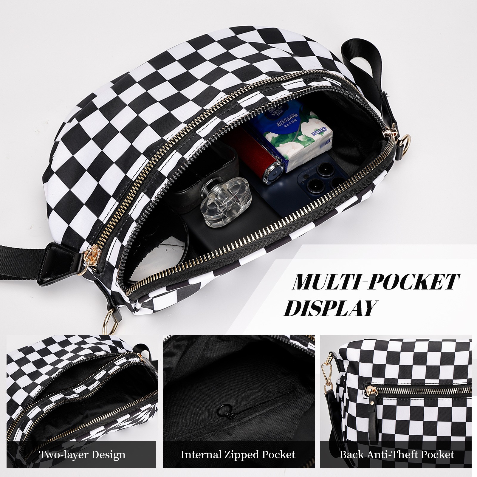 Large Capacity: Spacious interior with laminated zipper bag for organized storage.